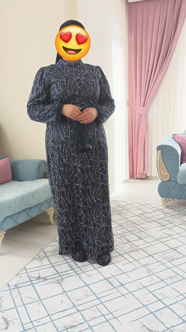 Yılan desenli, uzun kollu ve yüksek yakalı bu lacivert elbise, drapeli ve vücuda oturan kesimiyle günlük kullanıma uygun, sade ve rahat bir tarz sunar. satılık