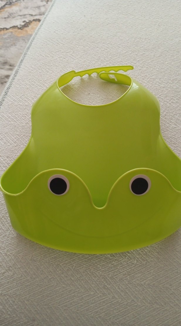 Yılan desenli renkli yeşil bebek önlüğü, kolay temizlenen malzemeden üretilmiştir ve yemek sırasında bebeğinizi temiz tutar.