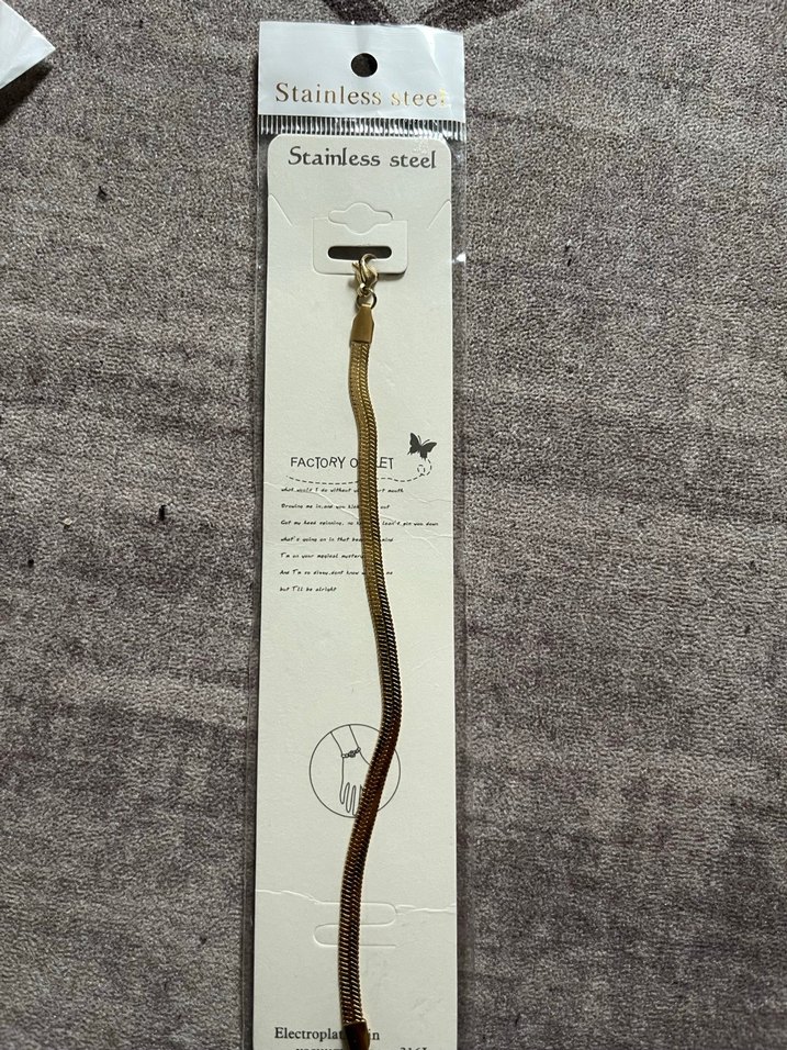 Paslanmaz çelikten yapılmış, yılan desenli zincir detaylı altın bileklik. Minimalist ve bohem tarzıyla günlük kullanıma uygundur.