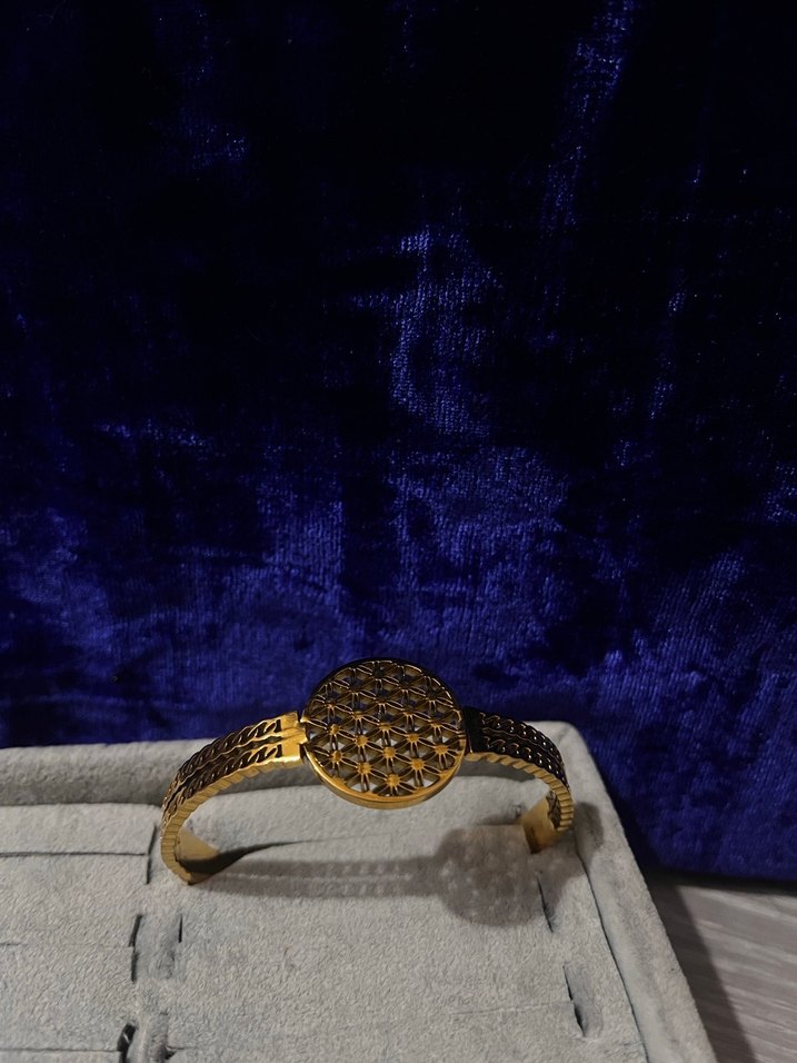 Parlak altın bileklik yılan deseni ve zincir detaylarıyla vintage ve bohem tarzı bir araya getirir, romantik akşamlar için uygundur.