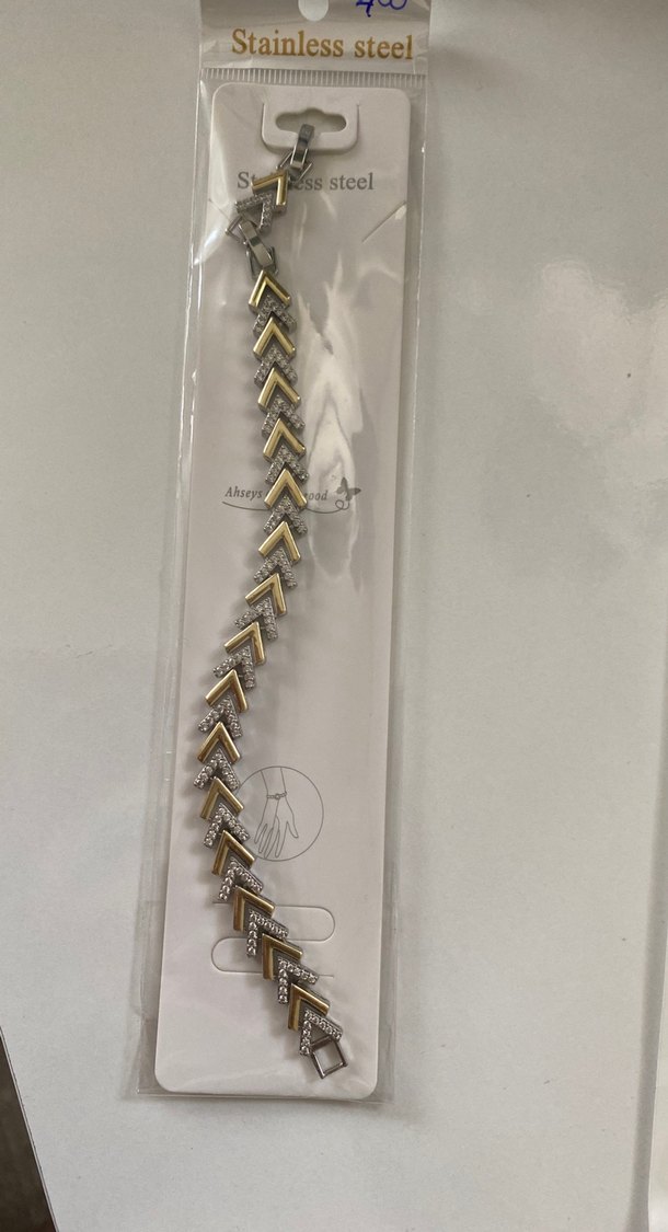 Altın ve gri tonlarda yılan desenli zincir detaylı kadın bileklik. Paslanmaz çelikten üretilmiş, günlük kullanıma uygun bohem ve avangart tarzda.