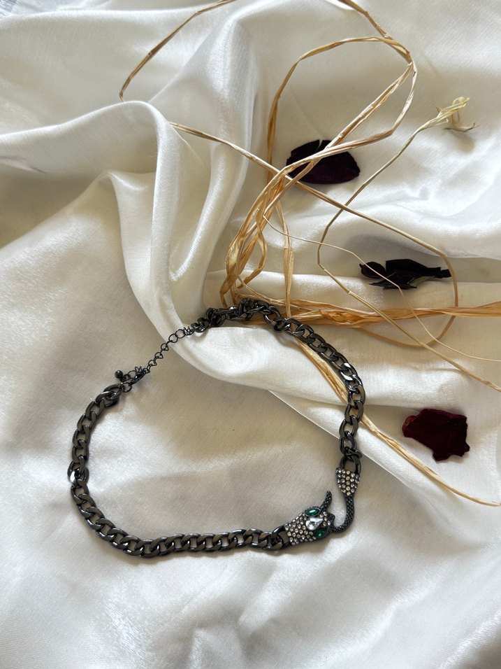 Yılan desenli , koyu renk zincirden oluşan kadın el zinciri. Minimalist ve bohem tarzda, günlük kullanıma uygun.