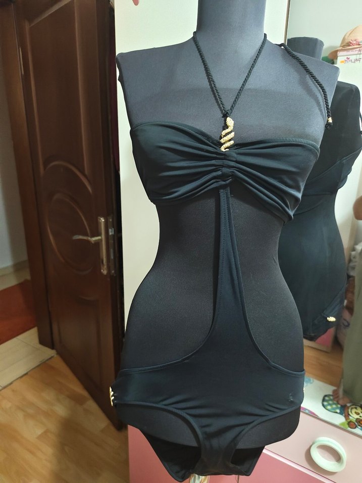plajda havuzda kullan için gotik stile uygun, yılan desenli ve zincir detaylı altın renkli gövde zinciri. Roberto cavalli 42 beden mayokini hiç kullanılmadı
