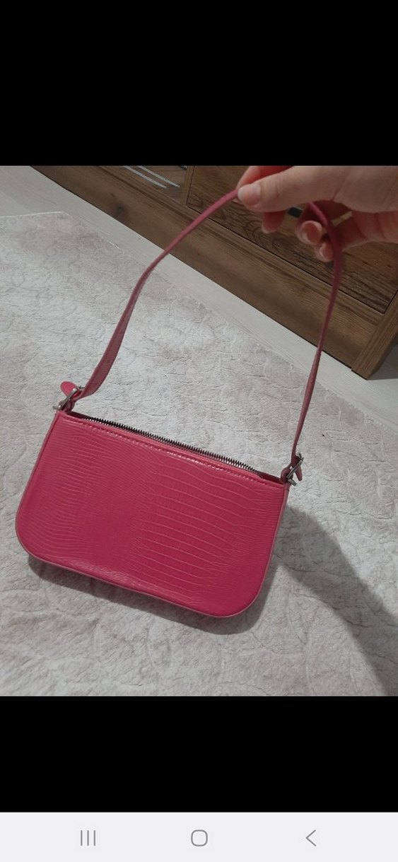 Yılan Dokulu Pembe Deri Fermuarlı Çanta