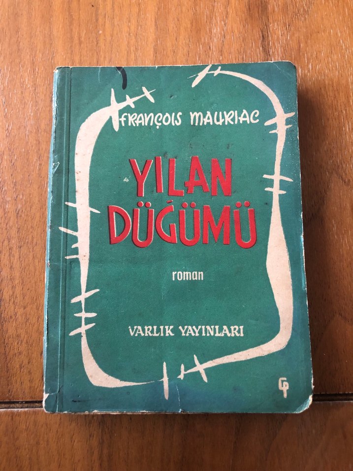 François Mauriac tarafından yazılmış, Varlık Yayınları'ndan çıkan 'Yılan Düğümü' adlı roman. Yeşil kapak üzerinde kırmızı ve beyaz başlık yazıları bulunur.