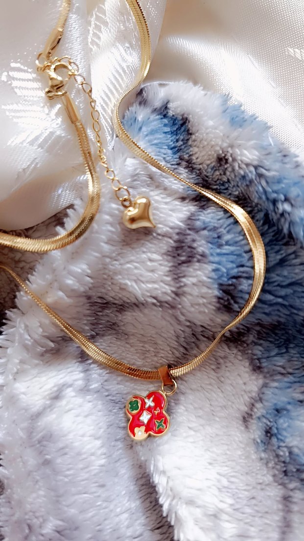 Renkli yılan desenli mini kolye, altın zincir ve küçük kalp detaylı, günlük kullanım için uygun bohem tarzda.