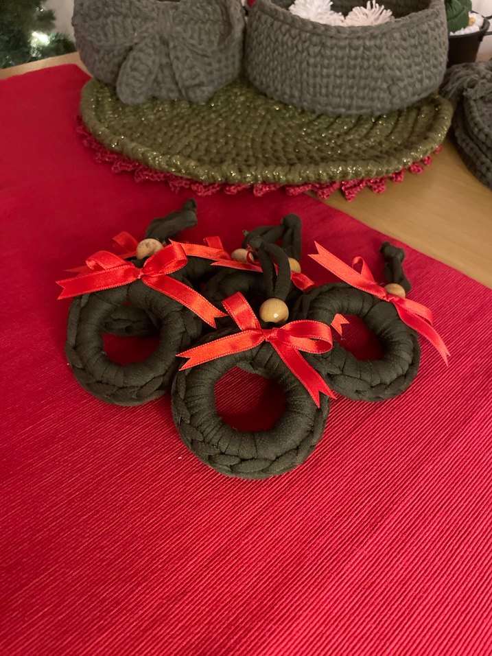 Kırmızı kurdele ve ahşap boncuklarla süslenmiş siyah bohem tarzda el yapımı yılbaşı ağaç süsü. Sıfır üründür 6 lı satılmaktadır.