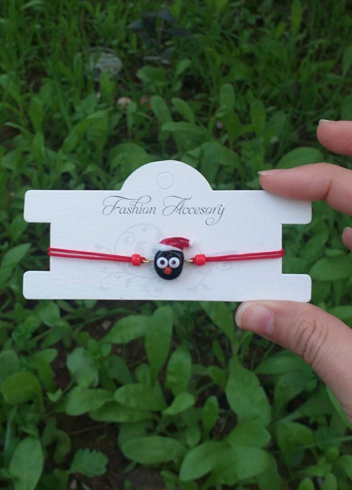 Renkli elastik bantlı, bohem tarzda baskılı ve minimalist kadın bileklik. Kırmızı renkte, dış mekan kullanımı için uygun. Seramik boncuktan tasarlandı.