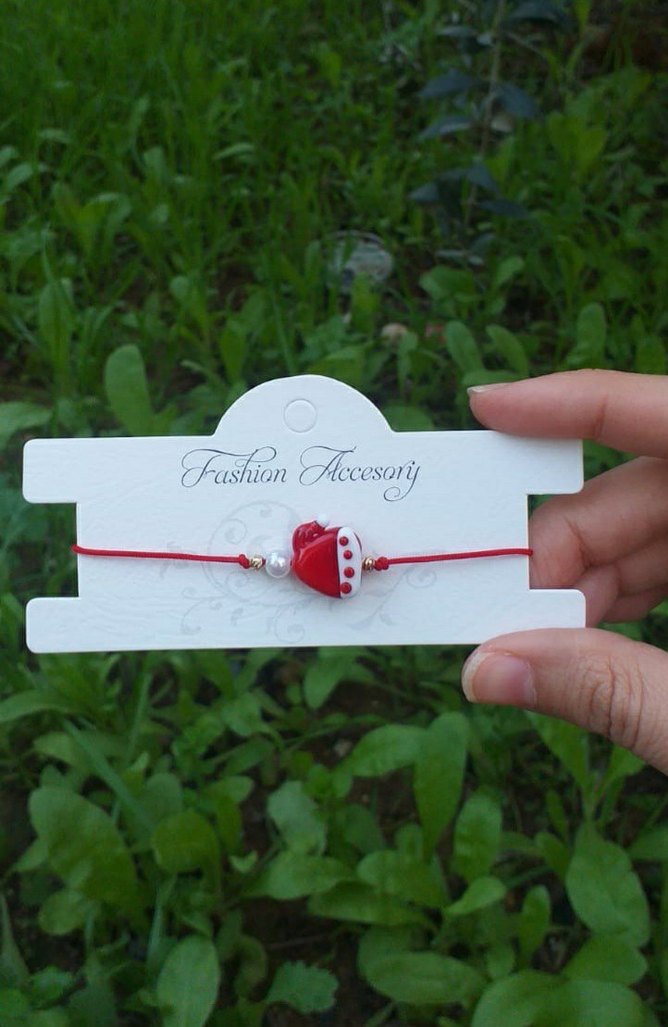 Bohem tarzda, kırmızı ipli, nakışlı boncuk detaylı bileklik. Minimalist ve romantik akşamlar için uygun. ❤️