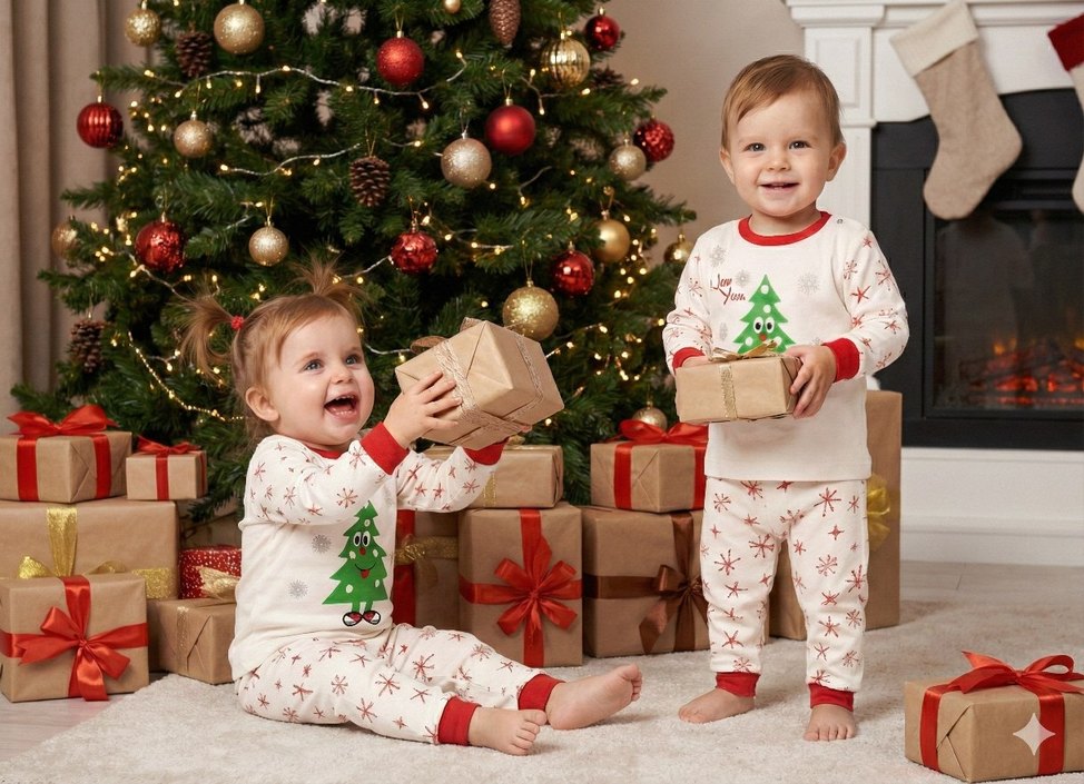 Yılbaşı Desenli UNisex Pamuklu Çocuk Pijaması