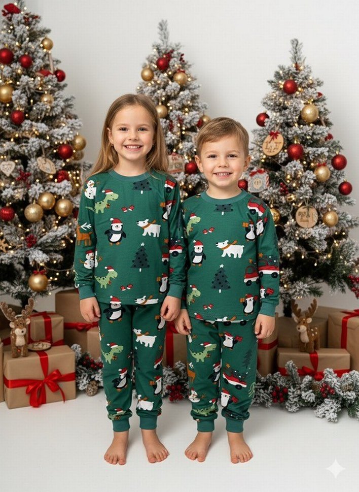 Yılbaşı Desenli Yeşil Pijama Takımı 5-6 Yaş