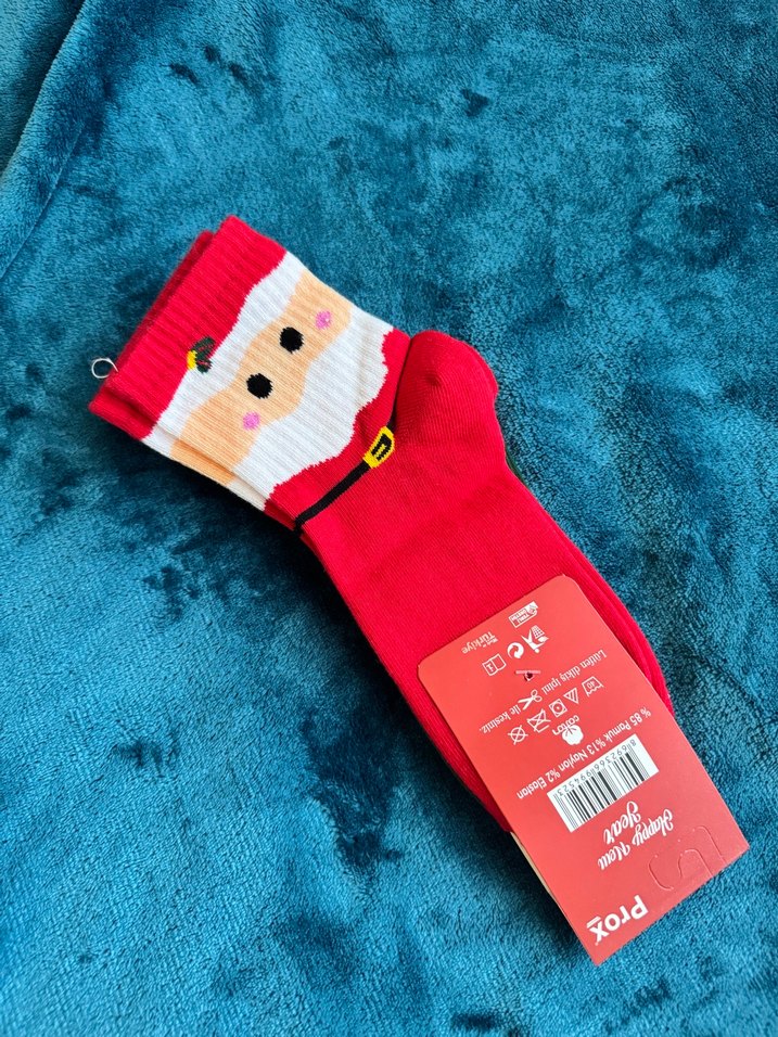 Kız çocukları için renkli Noel Baba desenli, yumuşak ve sıcak dokulu kırmızı çoraplar. 3 çift çorap içermektedir