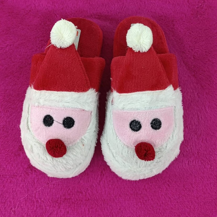 Kızlar için sıcak, yumuşak kumaşlı, nakışlı Noel baba figürlü ve örme detaylı ev terliği. urunun 36-37-38-39-40 numaraları mevcut