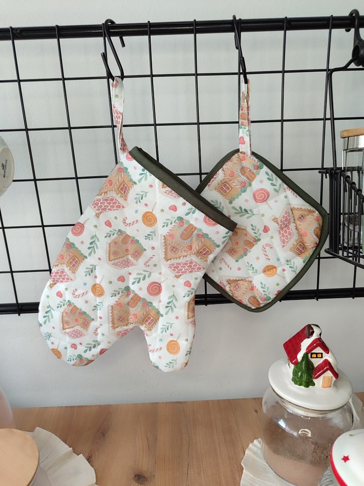 Yılbaşı evi desenli Mutfak Eldiveni Seti