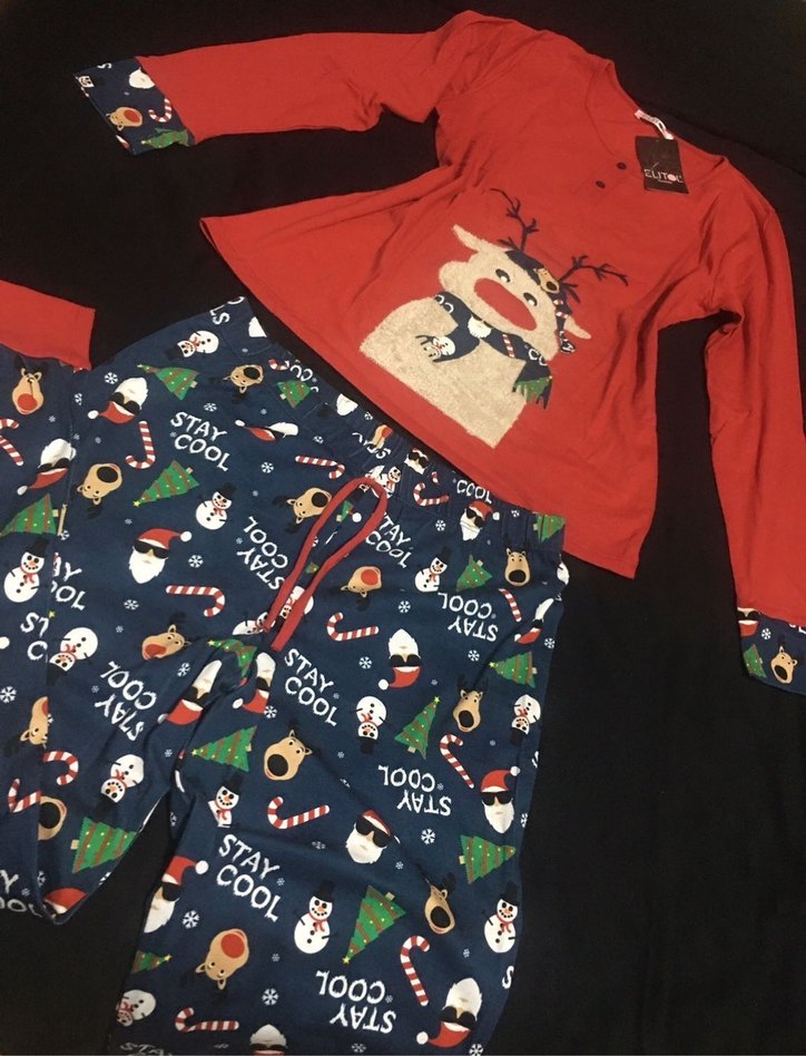 Rahat kesim, uzun kollu, bisiklet yaka kadın pijama takımı. Yılbaşı temalı, pamuklu penye kumaştan, kabartmalı desen, diz yapmaz, esnek yapıdadır. XL beden, M-L bedenler de giyebilir.