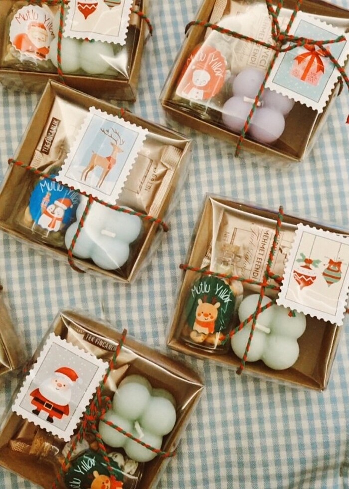 Yılbaşı hediye seti , karışık renklerde gönderilecek. İçerisinde pastel renklerde mum , süslü ahşap tıpalı cam şişe (içinde çakıl taşı) türk kahvesi , yılbaşı temalı tatlı kurdeli kutu set olarak gönderilecek. Adet fiyatidir.