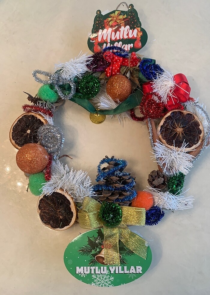 Yenidir kullanılmamıştır. Büyük boydur. Büyük kaplara rahatlıkla asılır . Renkleri parlak ışıltılı ve canlıdır. Çok dayanıklıdır senelerce kullanılır. #Yılbaşı #Kapı #Süsü