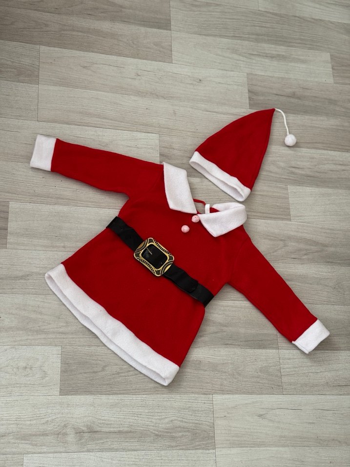 Son fotoda gösterdim ipinin biri kopuk. Kemerli, yakalı, uzun kollu kırmızı çocuk kostümü ve beyaz ponponlu kırmızı şapka. Canlı renklerle sokak tarzında tasarlanmıştır.