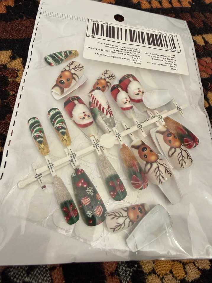 #yılbaşı #noel temalı #takma #tırnak Koyu renkli, geyik, Noel Baba ve yılbaşı desenleri içeren çok renkli tırnak süsleri. Herhangi bir deformasyon yoktur #iadeyok