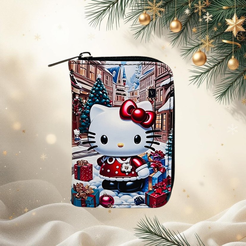Yılbaşı temalı hello kity baskılı çocuk cüzdan