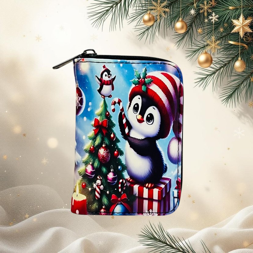 Yılbaşı temalı penguen baskılı çocuk cüzdanı