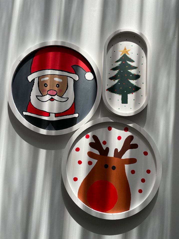 Noel Baba, çam ağacı ve geyik desenli yılbaşı temalı dekoratif tabaklar. Markamız rodizayn. İsteğe göre yapılır. Hepsinin fiyatı ayrıdır. Lütfen sorunuz.