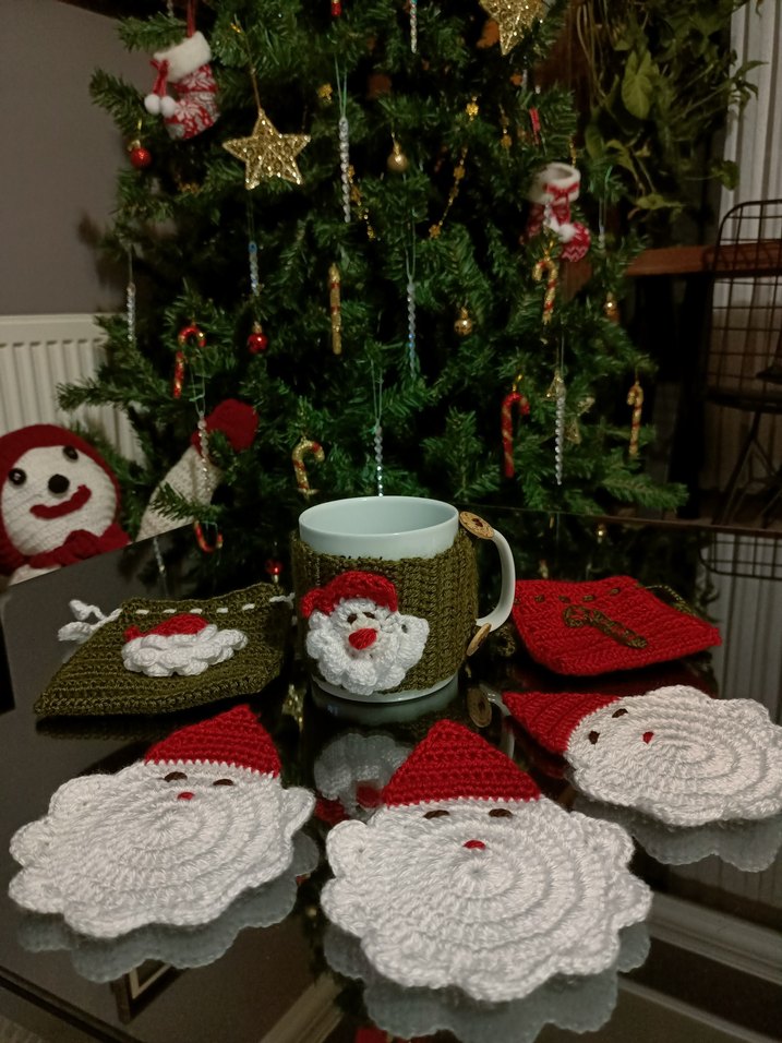 Yılbaşı Temalı El Örgüsü Bardak Kılıfı ve Bardak Altlıkları