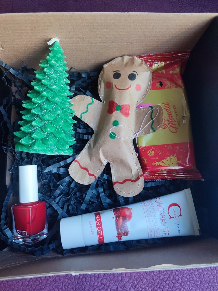 Yılbaşı coşkusunu sevdiklerinizle paylaşmak için bu hediye kutusundan daha tatlı bir seçenek yok! Yılbaşı ağacı mum, marşmellow, kırmızı oje ve cilt bakım kremi ile hem eğlenceli hem de kullanışlı bir sürpriz. Kendinizi ya da sevdiklerinizi bu şirin hediyelerle şımartın Hemen ya da ertesi gün kargoda ( sipariş saatine bağlı olarak) Ayrıca hediyenizin çok şık ve özenli paketleneceğinizden hiç şüpheniz olmasın