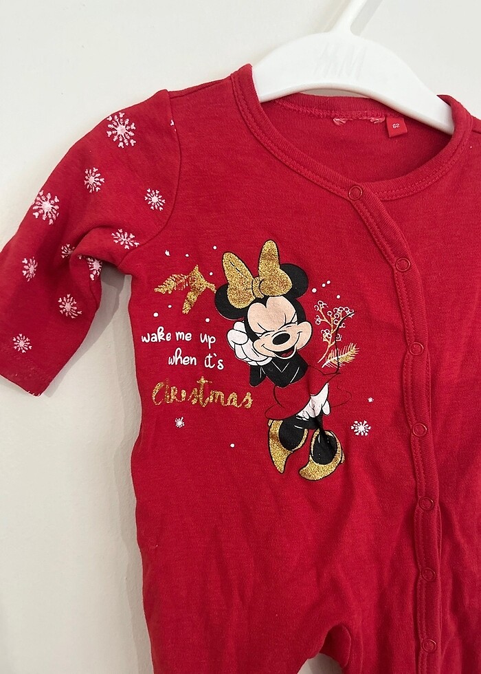 Renk: kırmızı, simli Beden: 62 cm Uni Baby deterjan (parfümsüz, hipoalerjeniktir) kullanarak 40 derecede yıkandı. Herhangi leke, yırtık vb. YOK! Evcil hayvan olmayan bir evde kullanıldı.
