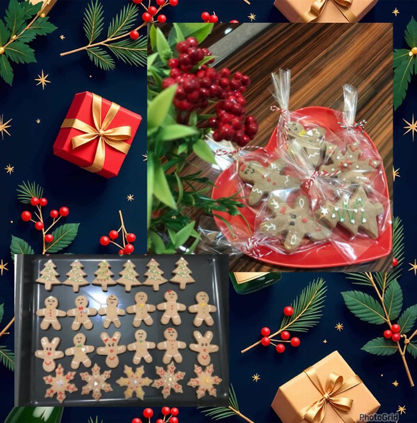 Yılbaşı temalı zencefilli kurabiyeler, ağaç, yıldız ve adam şeklinde süslenmiş, şeffaf poşetlerde paketlenmiş olarak sunuluyor. 10 adet fiyatıdır.