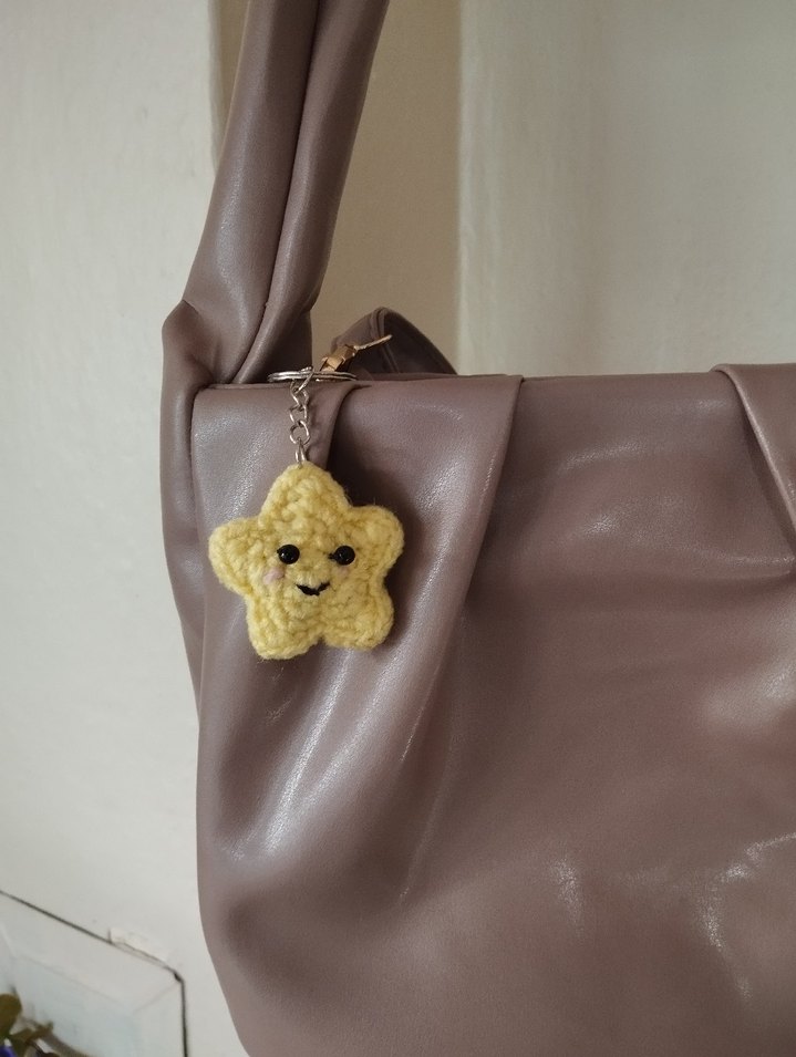 “El yapımı örgü yıldız anahtarlık. Kişiye özel renk seçeneği vardır. Toplu sipariş alınır.”