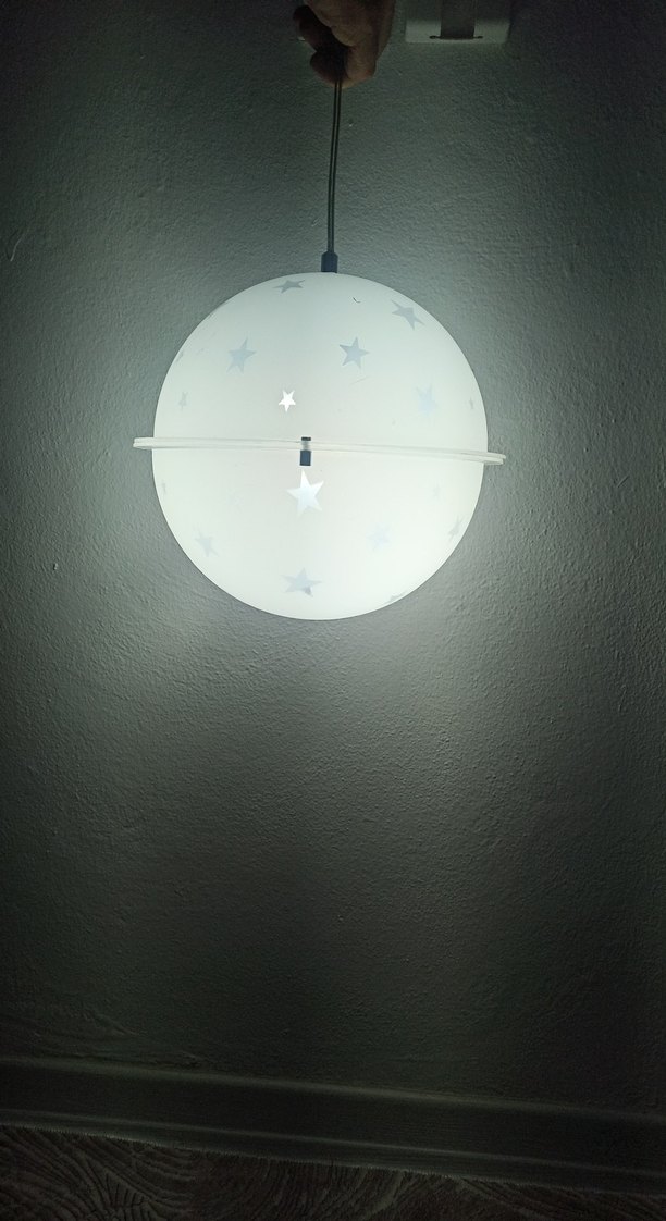 Yıldız desenli beyaz yuvarlak avize, yumuşak ve sakinleştirici bir ışık sağlar. Her odaya hoş bir atmosfer katar.
