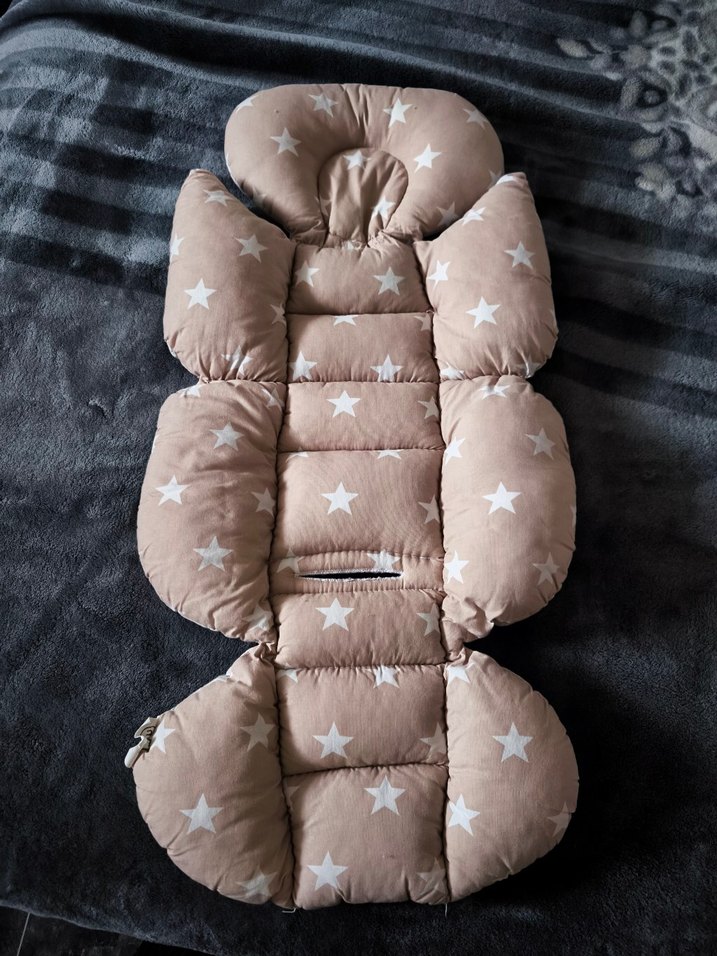 Yumuşak ve dolgulu, kahverengi ve gri tonlarda yıldız desenli bebek oto koltuğu minderi. Seyahat sırasında bebeklere konfor sağlar. ⭐