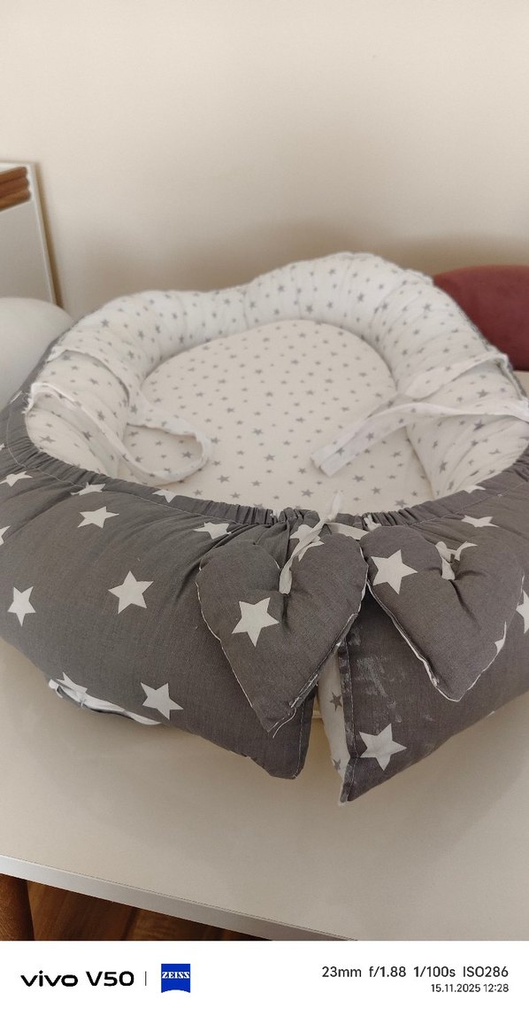 Gri renkte, yumuşak sentetik kumaştan yapılmış, yıldız desenli bebek uyku yatağıdır. Konforlu ve güvenli bir uyku alanı sağlar. ⭐