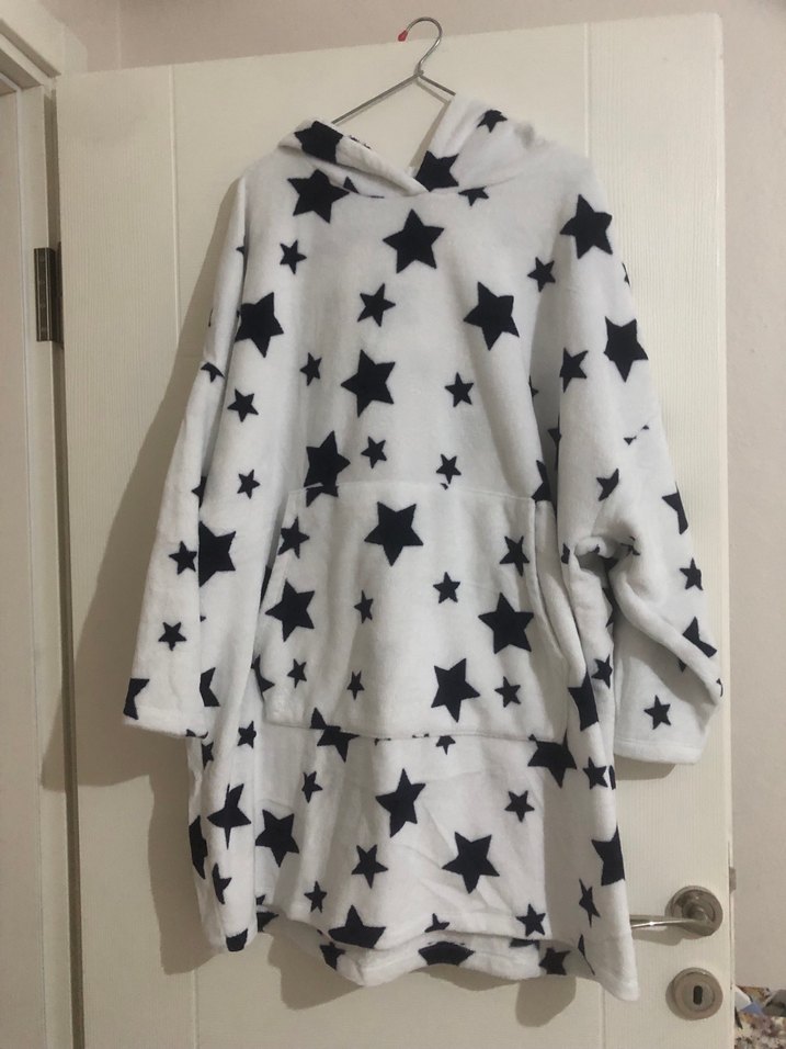 Yıldız Desenli Kapüşonlu Beyaz Sweatshirt
