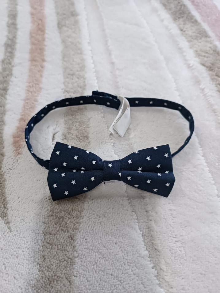Sentetik kumaştan, beyaz yıldız desenli lacivert çocuk papyon.