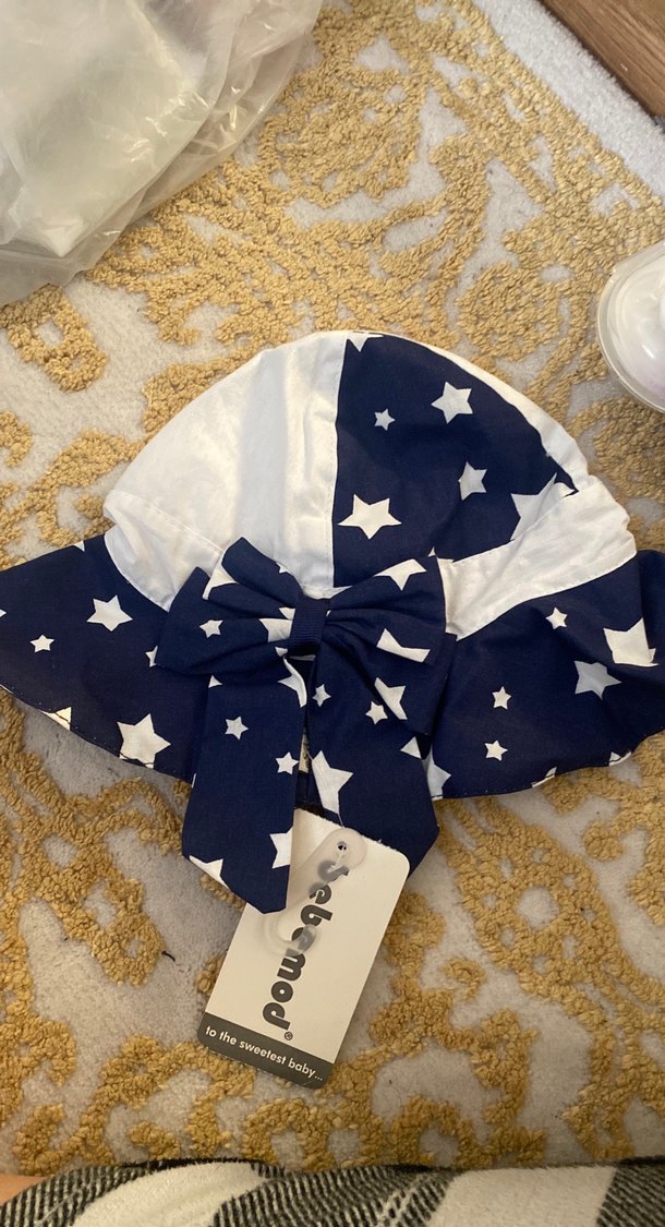 Yumuşak ve sıcak kumaştan, yıldız desenli ve fiyonk detaylı koyu mavi çocuk şapkası. Streetwear tarzına uygun, batik desenli.