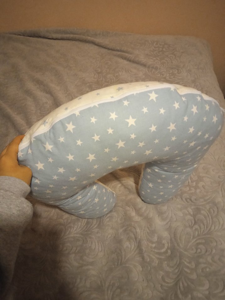 Yumuşak kumaşlı, yıldız desenli pastel gri hamile ve emzirme yastığı, konfor sağlar.