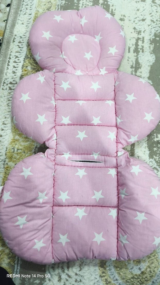 Yumuşak sentetik kumaştan yapılmış, pastel yıldız desenli pembe bebek minderi, çocukların uyku ve dinlenme zamanları için rahatlık sağlar. puset minderi
