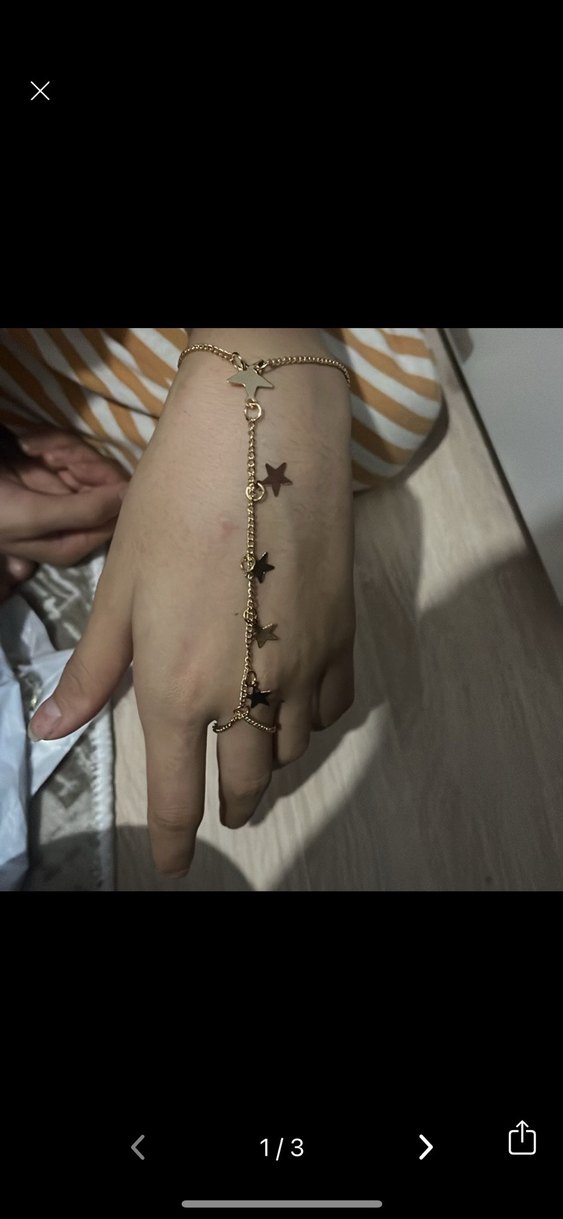 Günlük kullanıma uygun, yıldız figürlü detaylara sahip altın renkli bohem tarzda el zinciri.