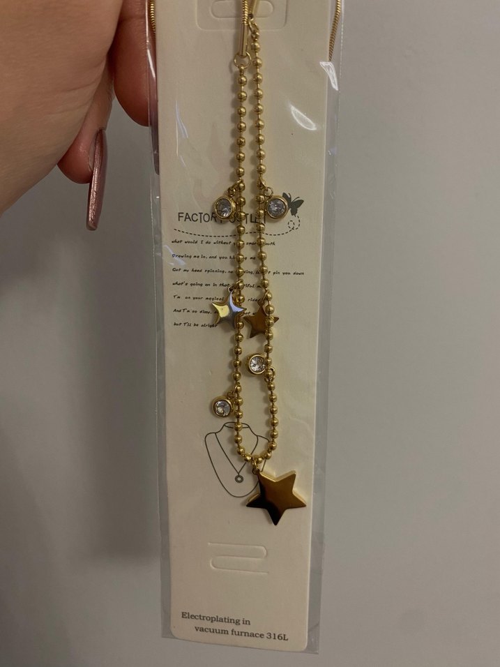 Yıldız ve kristal detaylı, parlak altın renkli el zinciri. Günlük kullanıma uygun, trend ve rahat tarzda tasarlanmıştır. ✨