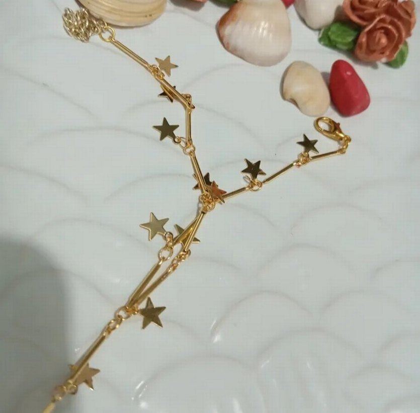 Altın renkli, yıldız detaylı kadın şahmeran Bohem ve göz alıcı tarzıyla parti için uygun, işleme desenli. ✨