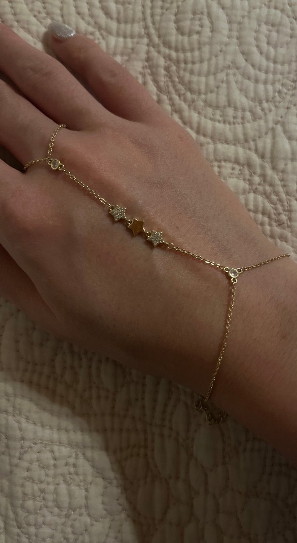Altın renkli, zincir detaylı ve yıldız süslemeli minimal ve bohem tarzda şahmeran. ✨