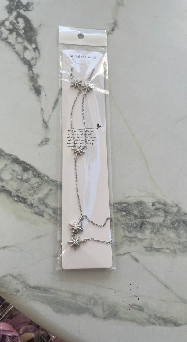 Minimalist bohem tarzda, gri paslanmaz çelikten yıldız detaylı kadın Y Kolye . Günlük kullanım için uygundur.