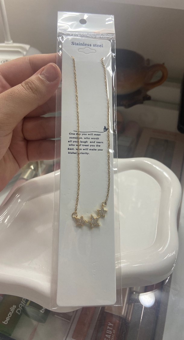 Paslanmaz çelikten yapılmış, yıldız detaylı altın renk zincir kolye. Günlük kullanıma uygun çağdaş ve minimal tasarım. ✨