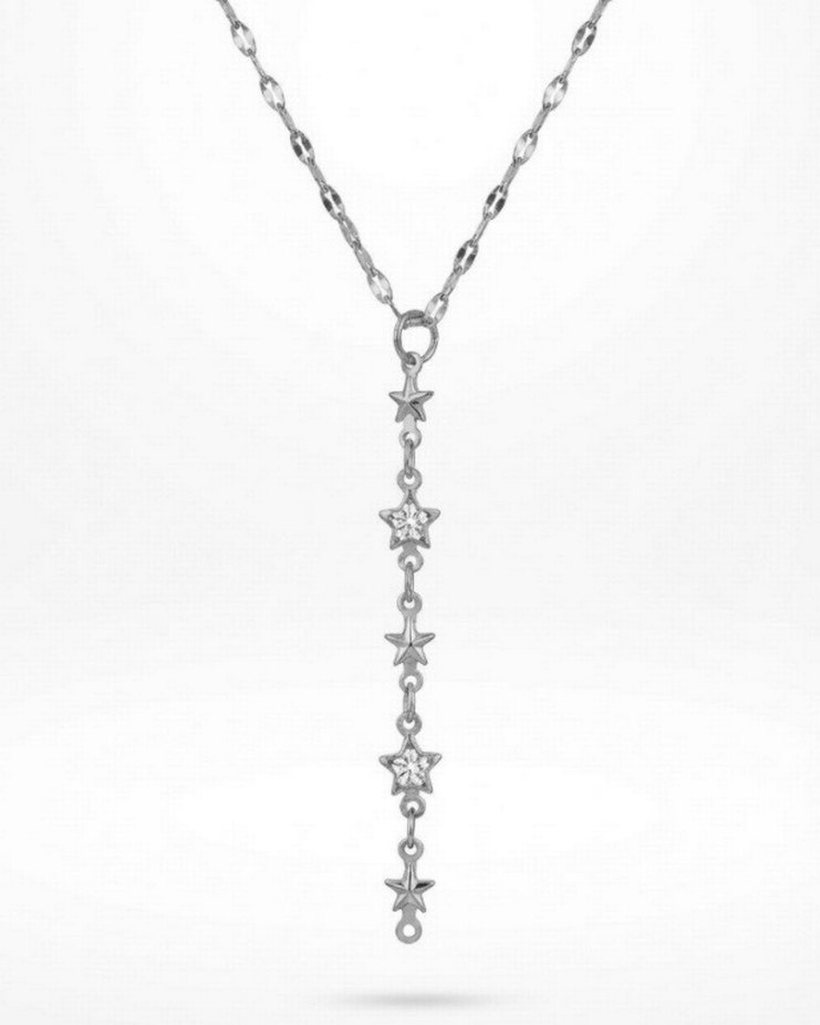 Yıldız Detaylı Silver Prenses Y Kolye