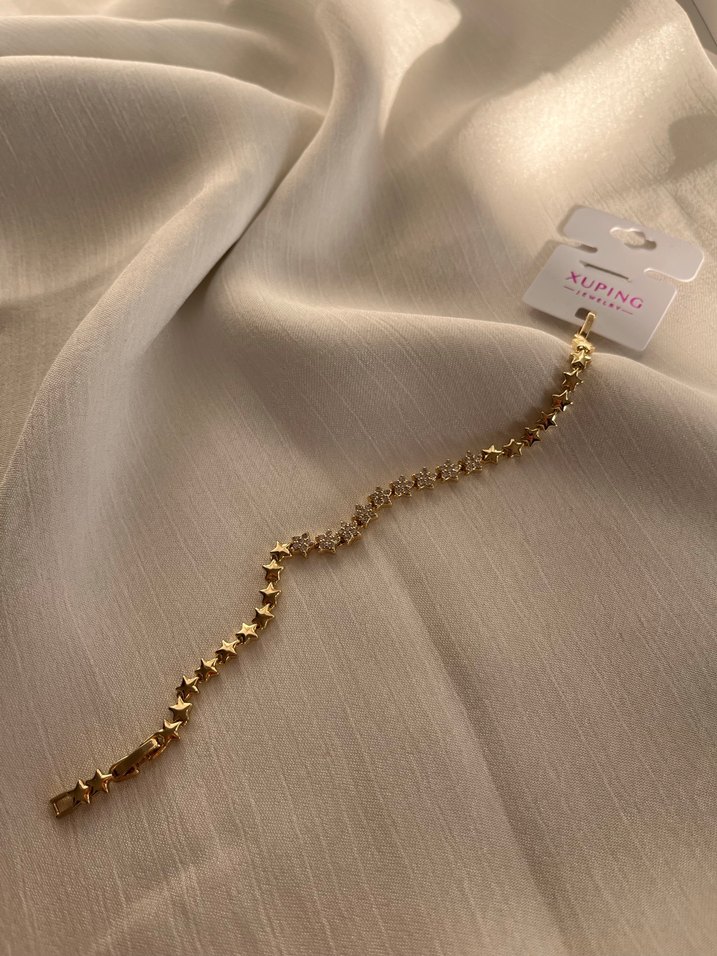 Parlak yüzeye sahip yıldız şekilli zincir detaylı altın bileklik, minimalist ve bohem tarzıyla günlük kullanıma uygundur. ✨ paslanmaz çelikten yapılma