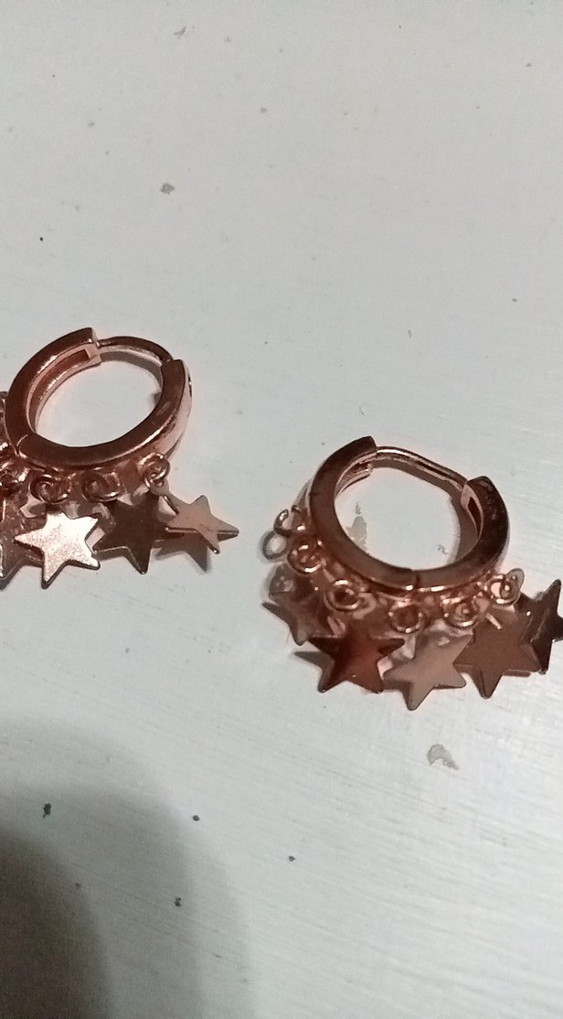 Zincir detaylı, mini altın halka küpeler, parlak yüzeye sahip ve yıldız figürleri ile bohem ve retro tarzlara uyumlu. Romantik akşamlar için ideal. ✨