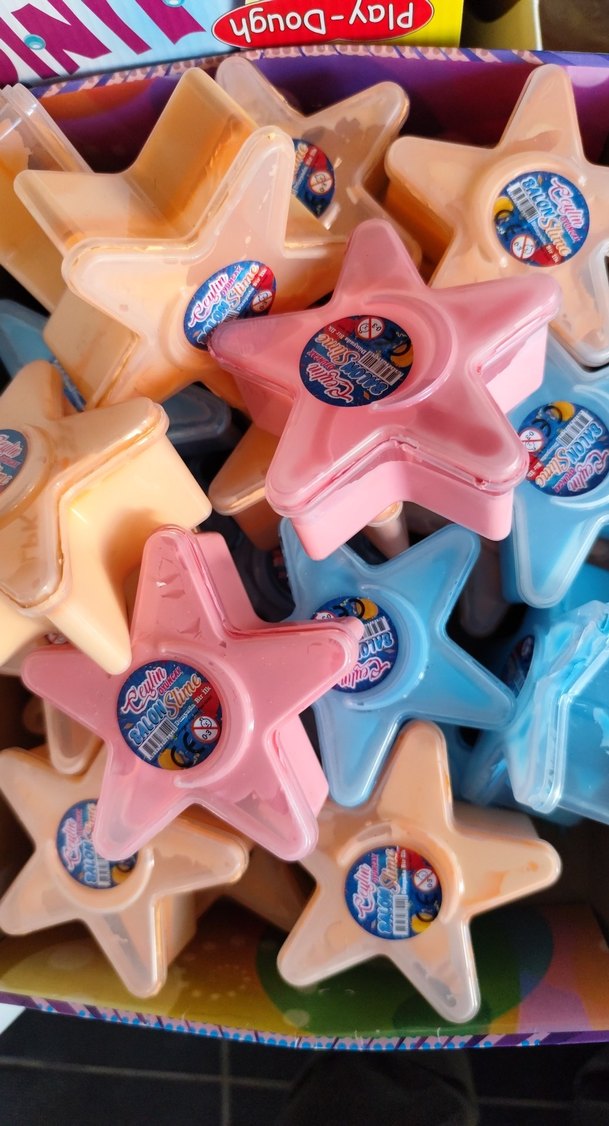 Çocuklar için pastel tonlarda pembe, mavi ve bej renklerde yıldız şeklinde Slime oyun jeli