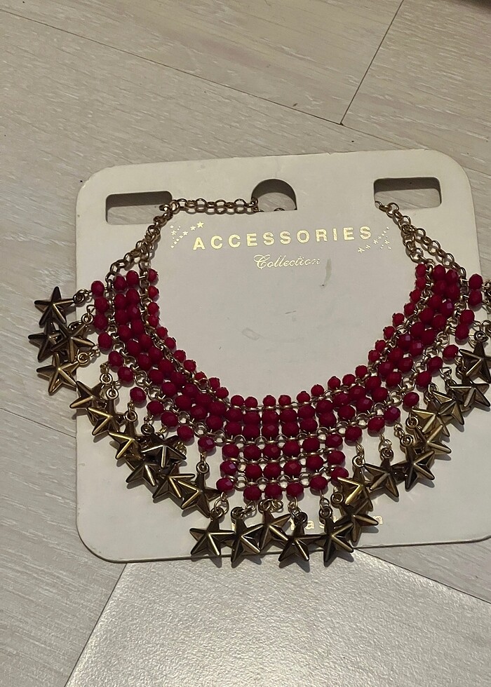 Yıldızlı bordo kolye